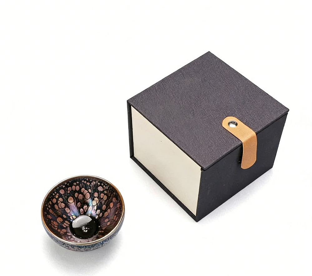 What makes these teaware so special is both their unique shape and their specialist glaze. Juanzhan tea cups are bowl shaped, but with a wide brim that allows the tea to stew and cool perfectly. They are glazed at a very high heat using a glaze with a high iron content, which creates a blackened and distinctively beautiful pattern that is unique only to Jianzhan pottery.Elegent Gift Item & Gorgeous Presentation Box Tea ware masterpieces are perfectly suited to be used as elegant gift items for all occasions. You can either shop one for yourself or a loved one when there’s need for a gift. These beautifully-crafted designs will serve as the ideal gift for weddings, birthday parties, Christmas get-togethers, office parties, housewarming, reunions or any family hangouts. All our tea ware comes with an elegant presentation box.Heat Preservation & Improve the Taste